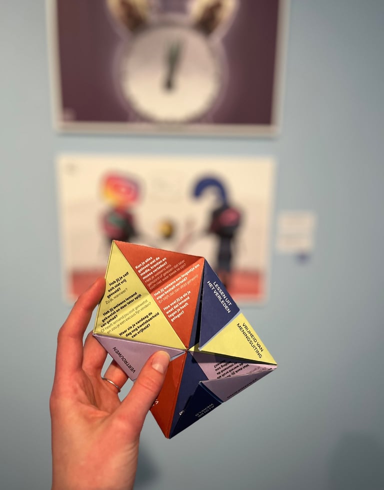 Niet alleen mag je de happer meenemen. Aan het einde van de tentoonstelling mag je ook jouw blik op vrijheid achterlaten en delen met andere bezoekers.
